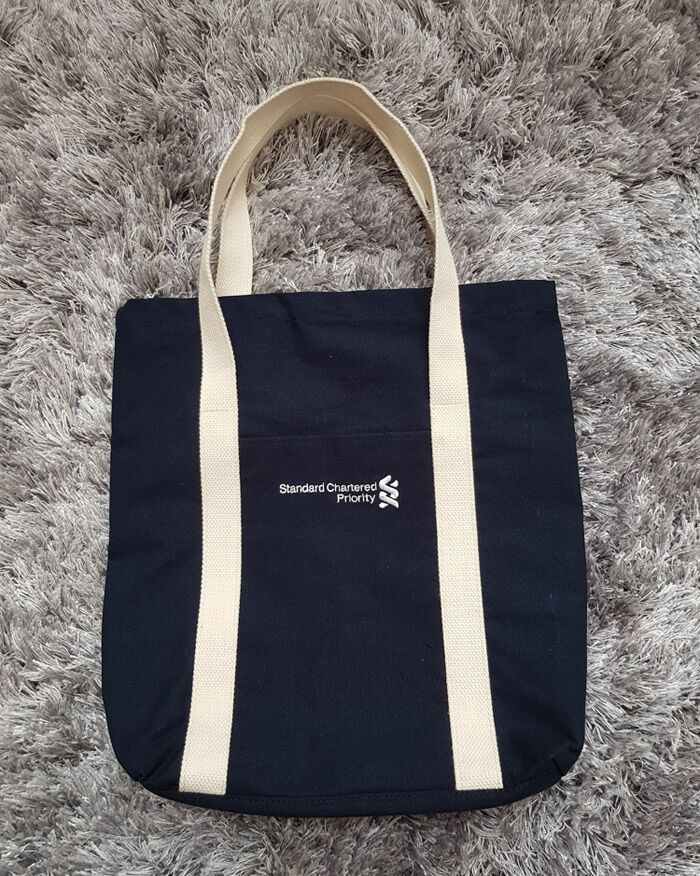 bahan canvas, tali nya kuat , tidak buat tangan saki atau kelelahan